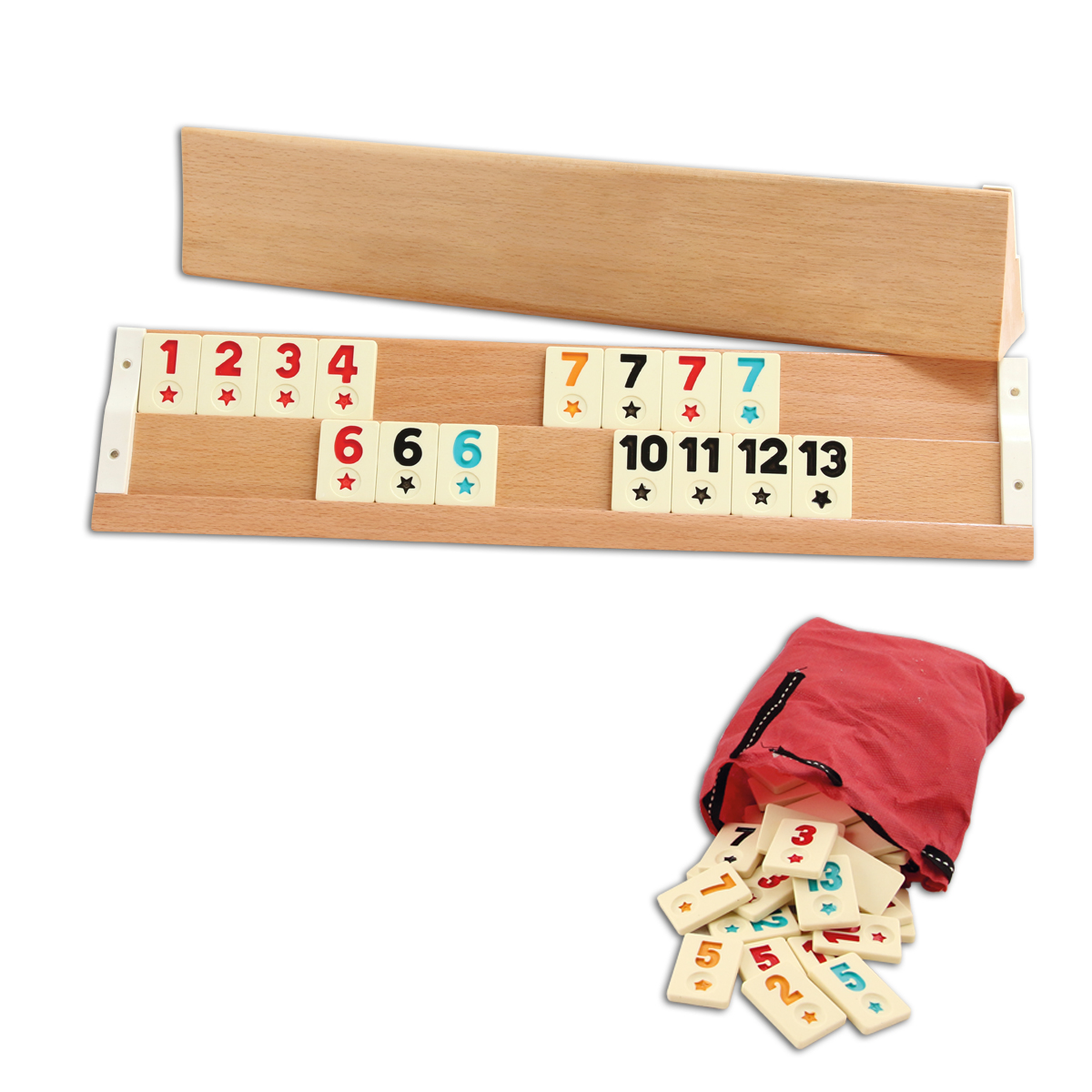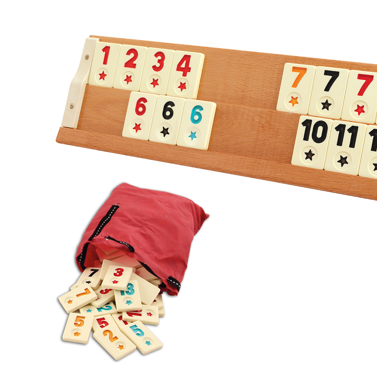يحتوي الطقم على كل ما تحتاجه للعب: رفوف خشبية، قطع بلاط (Tiles) مرتبة ومصممة بدقة مما يجعل اللعب مريح وسهل القراءة. إضافة إلى ذلك، التصميم الخشبي يعطي لمسة جمالية — ما يجعله ليس مجرد لعبة بل قطعة أنيقة لأي غرفة معيشة أو ركن تسلية.